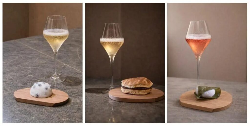 豆大福のやさしい甘みと塩味を、カバの繊細な泡が包み込む至福の組み合わせ。 大福の塩味がワインのフルーティーさを引き出し、酸味が後味をすっきりとまとめます。 甘みと酸味、そして塩味の完璧な調和を楽しめる組み合わせです。